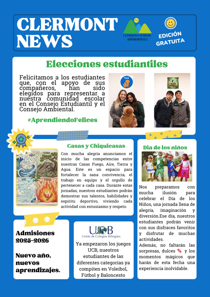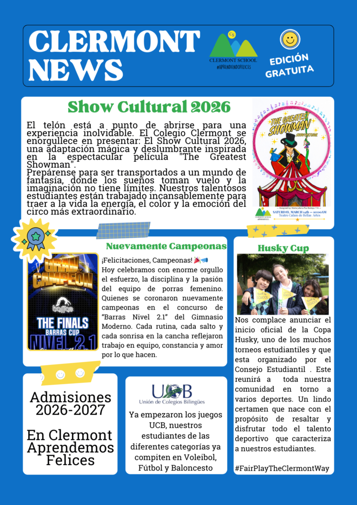En Clermont trabajamos por el desarrollo integral y el bienestar de nuestra comunidad educativa. Fomentamos la sana convivencia y ambientes de aprendizaje significativos, fortaleciendo habilidades e intereses a través de proyectos, lectura, escritura y oralidad.