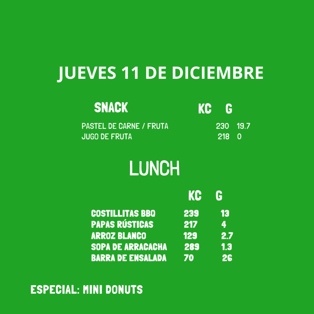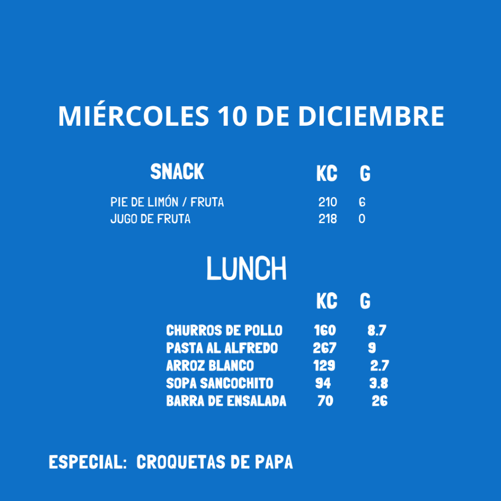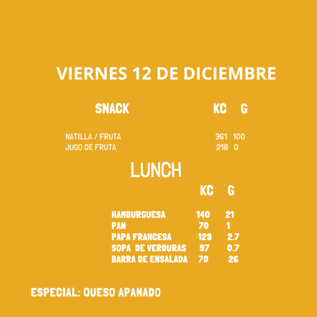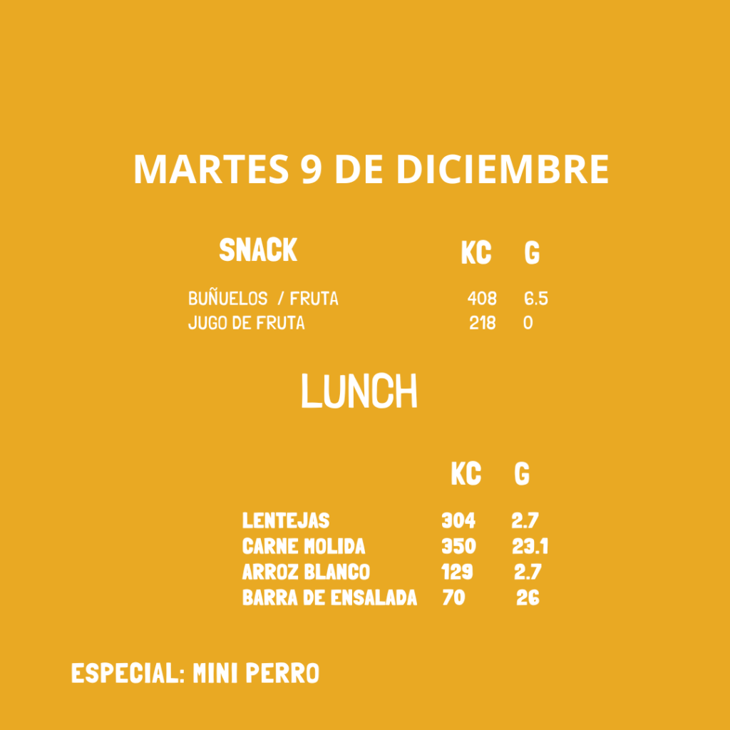 Menú del 09 al